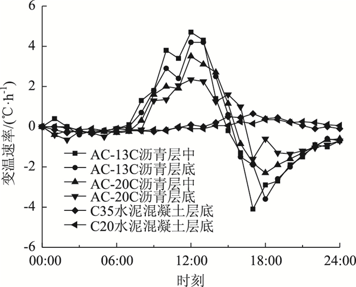 | 图 8 路面结构层的变温速率 Fig. 8 Temperature variation rates of pavement structure layers varying with time |