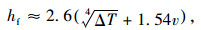 2.3.1 路表面的对流换热系数路表面的对流换热系数主要取决于风速的大小、路表温度与气温之差。当风速v≤5 m/s时,对流换热系数hf可这样近似计算[13]: