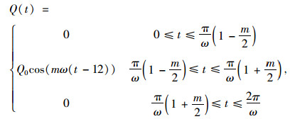 太阳辐射Q(t)的日变化过程可近似用下列分段函数描述[6]: