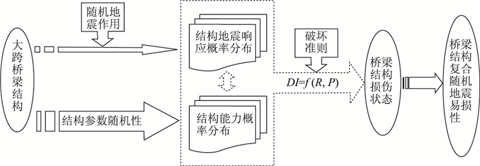 | 图 1 桥梁复合随机地震易损性分析示意图 Fig. 1 Schematic diagram of compound stochastic seismic vulnerability analysis of bridge |