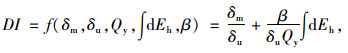 式中,DI为系统损伤指标;δm和δu分别为地震动激起的最大位移和系统的极限位移;∫dEh为系统在地震动时程内总的滞回耗能;Qy为系统的屈服强度;β为系统参数,也即耗能因子,β的取值一般在0~0.85之间变化,均值在0.10~0.15左右。