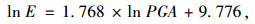 通过回归分析,可以得到IDA曲线在自然对数下,ln D和ln E与ln PGA的关系可分别表达为: