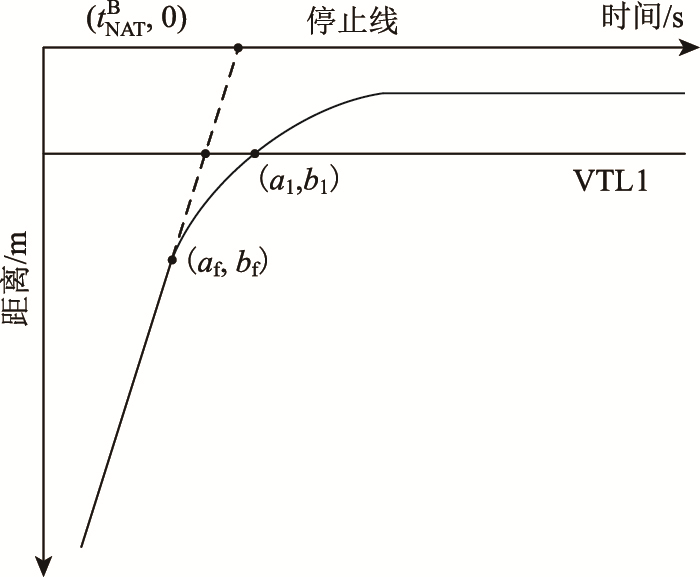 式中,t1A为车辆到达VTL1的时间;tmin为车辆能从VTL1到停车线的最小通过时间。