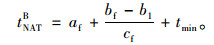 将自由流速度cf代入式(11),我们可以得到车辆开始从自由流速度减速时的位置坐标(af,bf)。通过图 2可以得到B位置车辆的NAT: