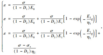 式中,E0,E1为弹性模量;η1,η2为黏滞性系数;σs为长期强度;σcr为开关元件启动应力;ε为应变;σ为应力。