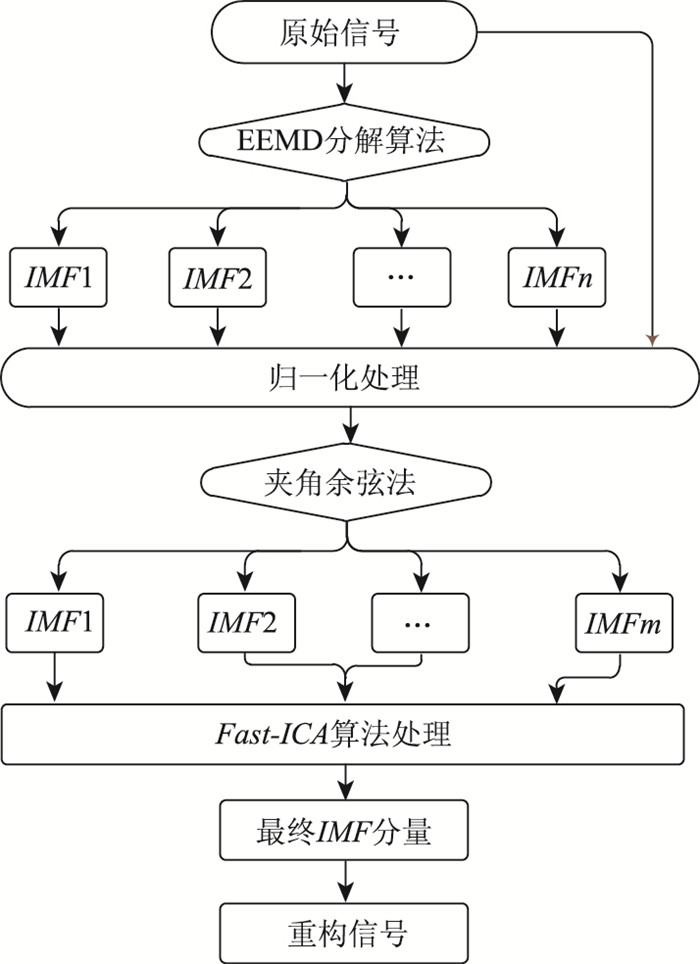 基于夹角余弦法和Fast_ICA算法的改进EEMD算法流程图如下: