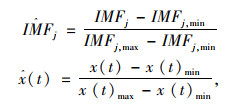 式中,IMFj, min和IMFj, max分别代表IMFj的最小值和最大值;x(t)min和x(t)max分别代表x(t)的最小值和最大值。