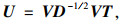 式中,V为分解变量:求解S=[s1, s2, s3, …, sn]的协方差矩阵E[SST]的特征向量,组成正交矩阵以获得分解变量V;D为对角阵,由各个特征向量所对应的特征值组成。