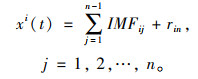 Step2:对xi(t)进行EMD分解得到IMFij和残余项rij,j代表每次EMD分解后IMF的个数,即: