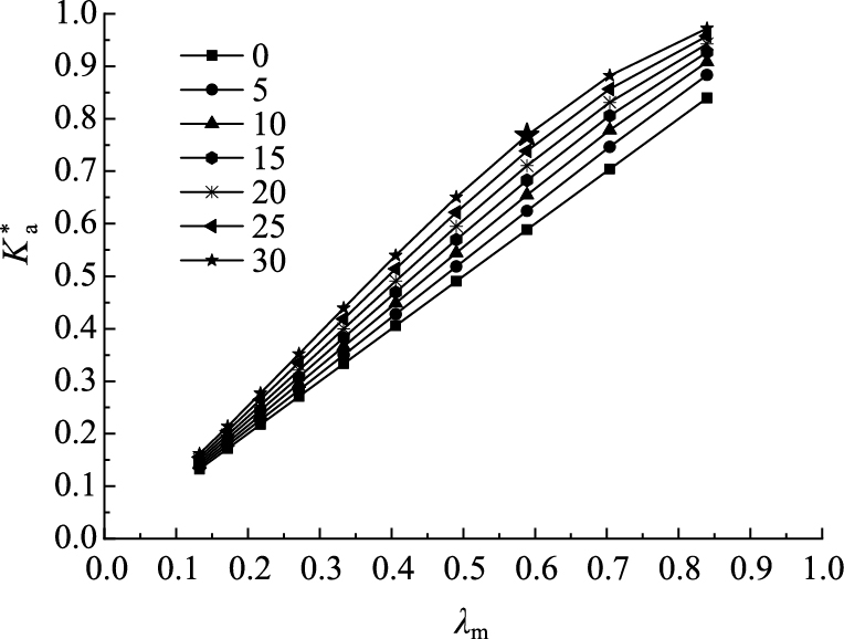 图 1为δm在不同取值时Ka*随λm的变化规律图。由图 1知,Ka*与λa线性关系明显,若按照线性关系处理,其相关系数大于0.99。