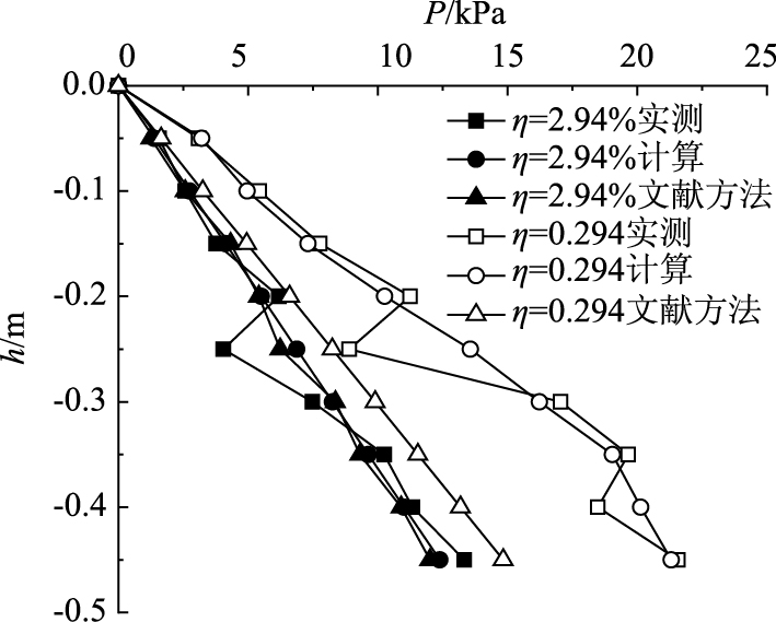 | 图 13 理论计算值与试验结果比较(Dr=38%) Fig. 13 Comparison of theoretical calculation value and test result (Dr=38%) |