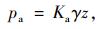 2 非极限主动土压力计算 2.1 松弛应力发挥系数的引入经典的土压力理论中,对无黏性土,土压力可表示成如下形式: