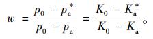 松弛应力发挥系数体现的是应力松弛程度的大小,反映了松弛应力大小对非极限主动土压力的影响程度,由式(8)知,松弛应力发挥系数越大,应力松弛程度越大,非极限主动土压力越小。当w=0时,土体未发生松弛,即处于静止状态;当w=1时,土体完全松弛,达到主动状态;当0 < w < 1时,土体部分松弛,处于非极限状态。对式(8)作变形,可得到: