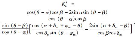 式中,Kd为考虑s对φm和δm影响的系数,Kd=4arctanηπ;δ0为静止状态时的墙土摩擦角, δ0=φ/2。