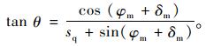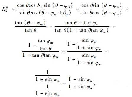 式中,α,β分别为墙背的倾斜角、墙后填土面的倾角;φm,δm分别为非极限状态下的土体内摩擦角、墙土摩擦角;θ为准滑动面与水平面倾角。