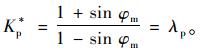 当η=s/sc=1时,土体处于被动状态。此时,记Kp*=Kη=1,因此,