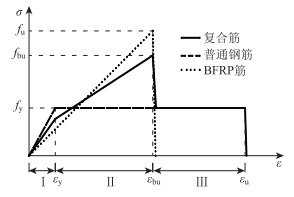 式中,Es,As,εy为钢筋的弹性模量、截面积、屈服应变,εy取0.002;Eb,Ab为外包纤维的弹性模量、截面积;ε为复合筋的应变;A为复合筋的总面积,A=As+Ab。