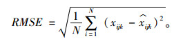 2.3 试验设定为了评估模型表现,将已观察到的数据掩盖为“缺失”数据。采用两种数据缺失模式,即随机缺失(Random Missing, RM)和非随机缺失(Non-random Missing, NM),对这些“缺失”数据进行逼近估计。选取平均百分比误差(Mean Absolute Percentage Error, MAPE)和均方根误差(Root Mean Square Error, RMSE)作为评价指标: