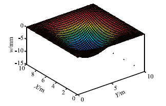 | 图5 四边固支条件下顶板挠度曲面 Fig.5 Deflection curve surface of 4-side fixed roof |