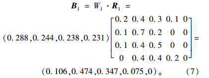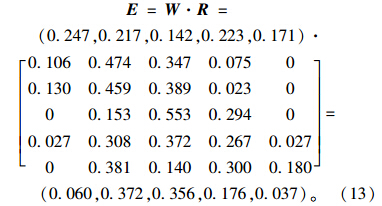 为评分专家k对指标i的打分;m为专家总数。根据熵权法确定的指标权重如表 1所示。 3.3 二级模糊综合评价
