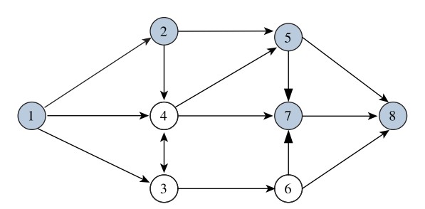 | 图 3 8个节点网络图基于优先权的编码 Fig. 3 Priority-based coding of network with 8 nodes |