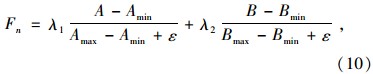 经过上述处理,就得到了一个新的单目标函数,因此适应度函数可以构造成式(11)的形式: