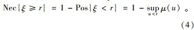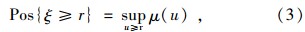假定ξ是一个模糊变量,它的隶属函数为μ(x),r是一个实数。那么模糊事件{ξ≥r}的可能性和必要性可分别用式(3)和式(4)来表示: