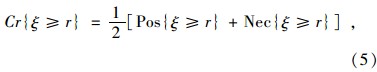 从式(3)和式(4)可以看出,当一个模糊事件的可能性是1时,该事件未必成立。当该事件的必要性是0时,该事件也可能发生。因此引出了可信性测度的概念:模糊事件的可信性(Cr)为该模糊事件可能性和必要性的平均,即: