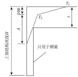 | 图 7 公路桥规的竖向温度梯度(单位:mm) Fig. 7 Vertical temperature gradient stipulated in highway bridge specification(unit:mm) |