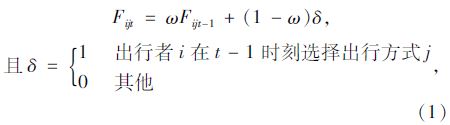 故,若记Fijt为第i个出行者第t次出行选择出行方式j的出行方式选择忠诚度变量,则: