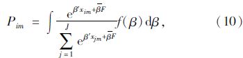 Mixed Logit模型的表达式没有封闭解,需要通过模拟的方法来进行估计。一般是按照某一分布密度进行抽样生成随机数,然后把这些随机数代入Lim(β)函数得到函数值,最后对这些函数值进行平均计算从而得到选择概率Pim的模拟解。Mixed Logit模型不受分布函数的限制,可以在任何精度上趋近于任何一种随机效用模型,因而具有着广泛的应用前景。