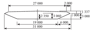 | 图 2 大带东桥横断面尺寸(单位:mm) Fig. 2Cross-section dimensions of Dadai East Bridge(unit:mm) |