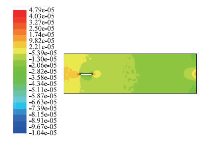 | 图 4 0°攻角时大桥断面周围的压力场分布情况(单位:Pa) Fig. 4Pressure field distribution around bridge cross-section at 0° attack angle (unit:Pa) |