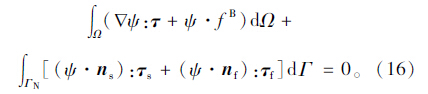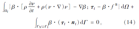 为增强解的稳定性,本文采用对流体方程、结构方程和网格中的弹性模型同时求解的方法求耦合体系的解。为了降低对解连续性的要求,这里采用Galerkin有限元法生成流体方程、结构方程和弹性模型方程的变分形式。