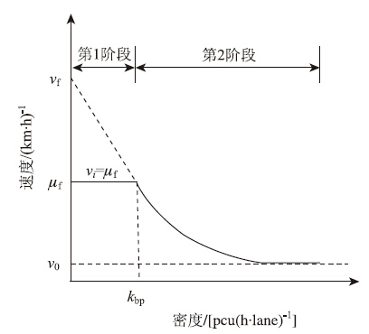 | 图 1 二阶段修正Greenshields模型 Fig. 1Modified 2-stage Greenshields model |