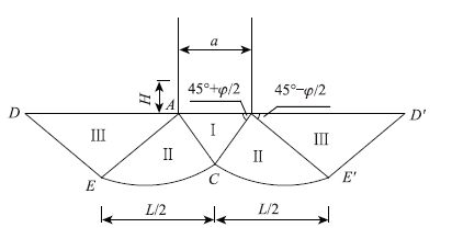 (4)基础埋置深度范围内,不计基础两侧与土体的摩擦力以及基础两侧土的抗剪强度对地基的影响,而用相应的均布荷载q=γH代替,γ为基础底面以上土的重度,H为基础埋深。