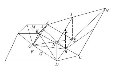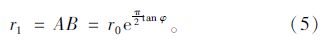 在过渡区中,按对数螺旋曲线旋转一周后得到的螺旋曲面计算,涉及到指数函数与三角函数乘积的复杂积分,故将其近似看作是4个平面,过渡区的1/4(如图 2为ODE)的剖面图如图 6所示,与文献[16]将过渡区和被动区的一半作为一个整体分析不同,受到文献[15]圆形浅基础地基极限承载力计算的启发,本文将过渡区单独拿出来作受力分析。