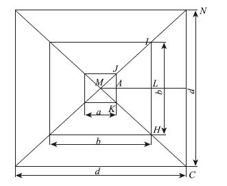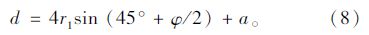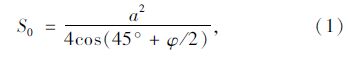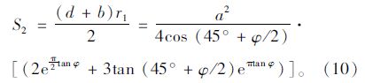 (2)当地基发生整体剪切破坏时,塑性区服从Prandtl理论假设的滑动面,即滑动区由主动区Ⅰ、过渡区Ⅱ、被动区Ⅲ,3部分组成,如图 1所示,图中φ为地基土的内摩擦角,a为方形基础底面边长。图 2为方形浅基础地基整体剪切破坏立面图,图 3为方形浅基础地基整体剪切破坏俯视图,b,d分别如图所示。