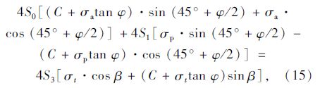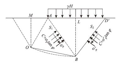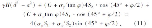 据文献[15],在圆形地基极限承载力的计算中,也是分开考虑了被动区和过渡区,并取整个被动区分析,本文同文献[15]假定条件一样,故有σpS1=σ′pS2。