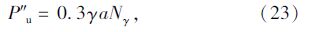假定地基土无黏聚力,且基础置于地基表面,即c=0,q=0。直接利用Vesic提出的基础形状修正系数,可推得方形浅基础的极限承载力P″u的公式: