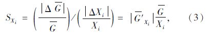 参数敏感性分析的目的是了解结构响应对各设计参数变化的敏感程度,即求得各设计参数的敏感因子。而敏感因子实际上是反映了各基本参数的不定性对结构响应影响的权。对于响应面法,求解敏感因子的方式与之类似。假设结构某一响应方程为g(X)=0,基本设计参数为X=(X1,X2,…,Xn),可采用响应面法求近似的结构响应方程g(X)=0,然后根据式(3)可求得各个变量Xi(i=1,2,…,n)对结构响应方程 g(X) 的敏感因子SXi为: