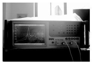 2 试验过程 2.1 试验设备试验采用英国Wayne Kerr公司生产的WK6500B精密阻抗分析仪,一套1J1011夹具来测量PZT的电导纳,仪器如图 2所示。仪器工作频率为20~20 MHz,可以提供包括阻抗、导纳、相位角、阻抗实部和虚部、导纳实部和虚部、电容、电感等参数作为分析数据,基本阻抗精度达到±0.05%。