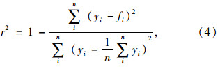 同时,采用确定系数r2来判断拟合曲线对测量值的拟合程度,r2越高,表明拟合曲线对测量值的拟合程度越高。确定系数r2的计算公式为: