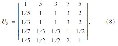 利用萨迪相对重要性等级法得到一级指标的判别矩阵U,其相对重要性等级如表 1所示。