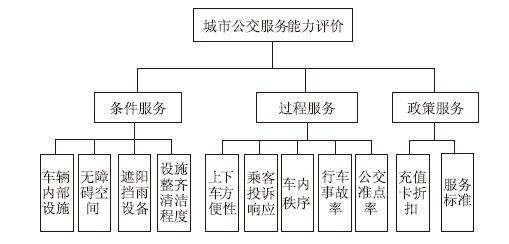服务条件是服务能力形成的前提和基础。公交服务条件评价就是评价公交设施组成部分的状况和隐含要素的服务能力是否满足用户和社会需求。一般来说,公交服务主体设施包括城市道路、车辆及相关设施。