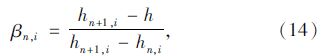 设hN,i是评价的最高可能值,h1,i是最低可能值。对于每一个等级Hn(n=1,…,N),假设一个定量指标的评价值hn,i与其对应(或等价),那么,关于ei的任一评价值h可以用式(14)、式(15)来变换成一个带置信度的等级集合:
