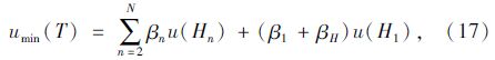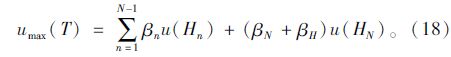 βnu(Hn)计算备选方案T的顶层指标效用函数值。如果βH≠1,那么则有一个置信区间[βn,(βn+βH)], 它代表T被评价为Hn的可能性区间。因此,从偏于安全的角度考虑,对备选方案T的评价定义一个效用函数区间[umin(T),umax(T)], 有: