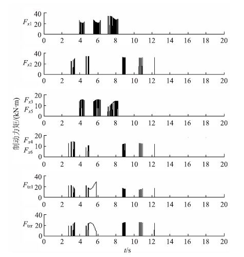 | 图 12 目标车轮制动力矩曲线 Fig. 12 Brake moment curves of goal wheels |