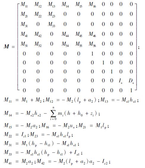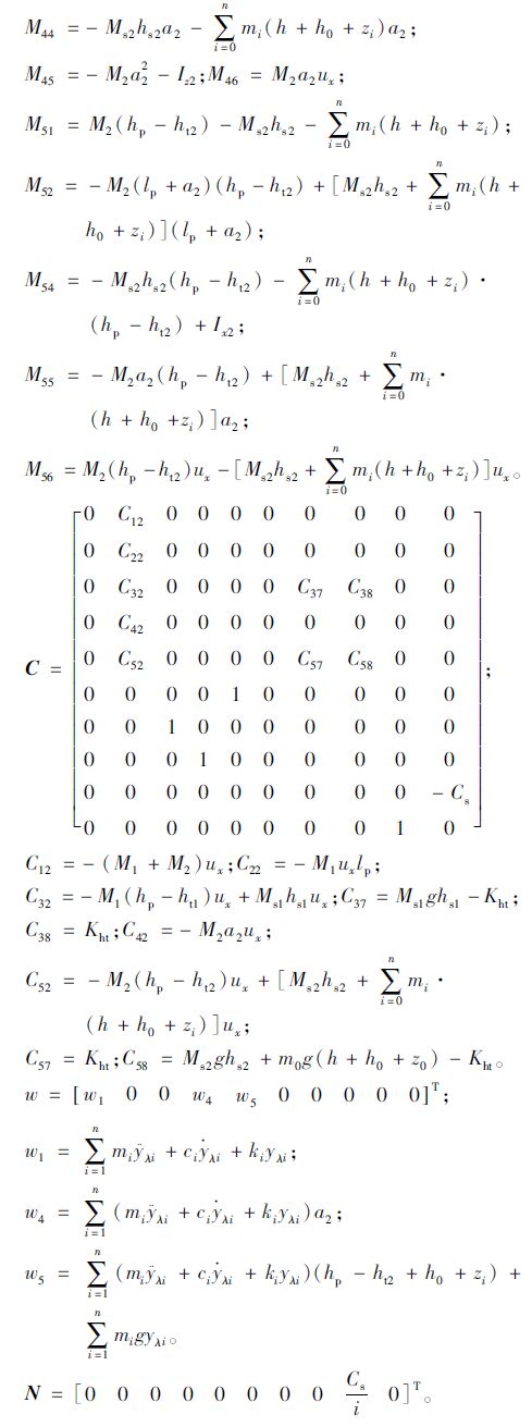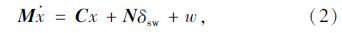 式中,A为系统矩阵,A∈R10×10且A=M-1C;B为输入矩阵,B∈R10×1且B=M-1N;u为系统输入,u=δsw。