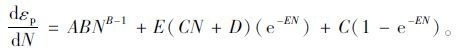 式中,N为荷载作用次数;εp为永久应变;A,B,C,D,E为应力比和材料性质的函数,